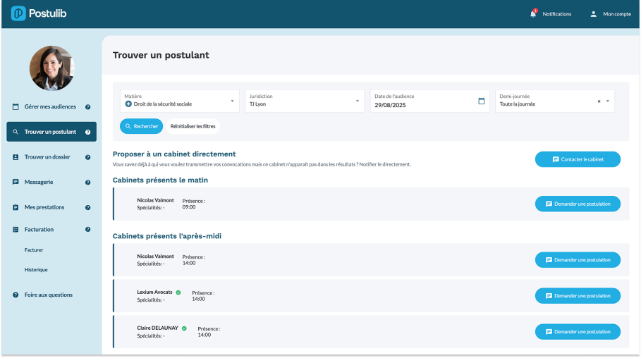 Aujourd’hui, Postulib connecte des professionnels du droit dans toute la France, quelle que soit leur spécialité, et simplifie chaque étape de la substitution grâce à un outil fiable et sécurisé.